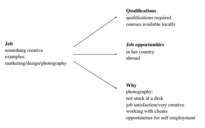 Andrea responded to the task appropriately but her answer was rather short and she could have spent a little longer on the subject. She could have developed her answer by speculating on a particular area of work that appeals to her, such as marketing, design, photography and saying why that kind of job would suit her. Candidates don’t have to answer all parts of the task but making notes against each point during her preparation time could have helped her to extend her answer. See the transcript of this podcast for an example.